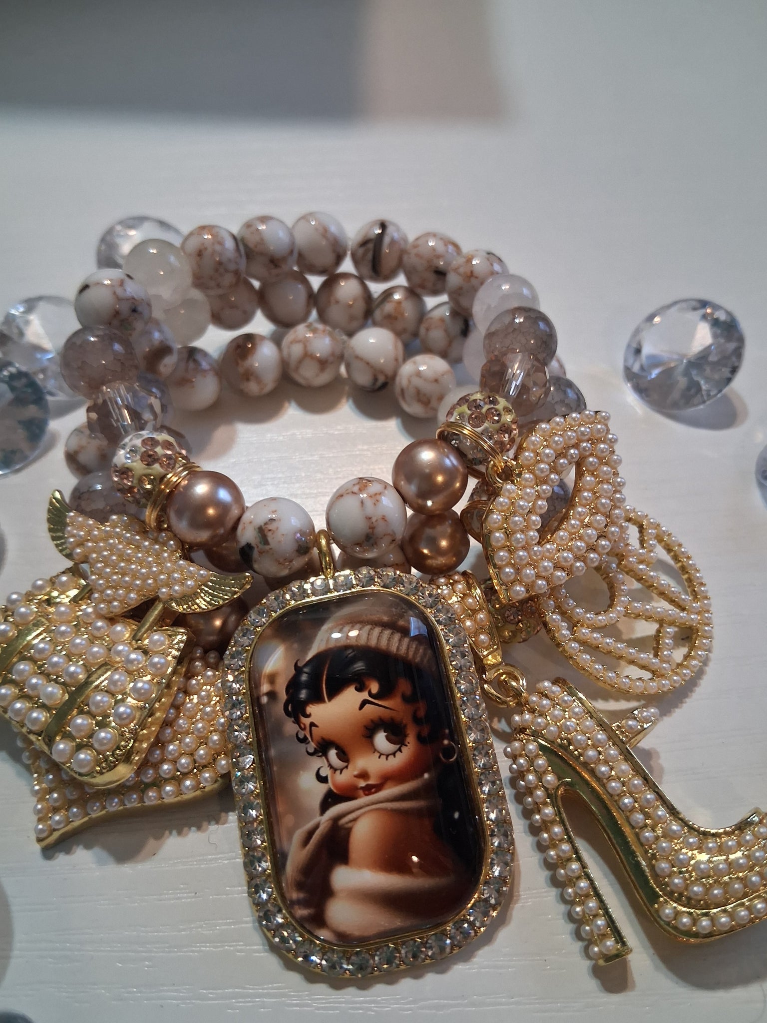 Three piece bracelet set with charms on 10mm beads